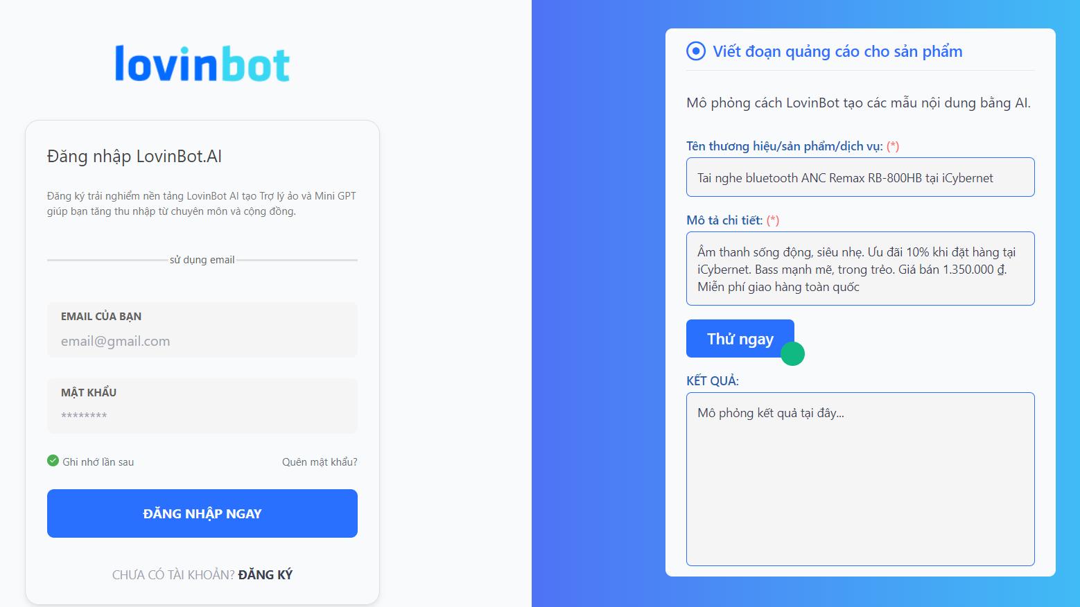 Bước 5: Đăng Nhập Lovinbot
