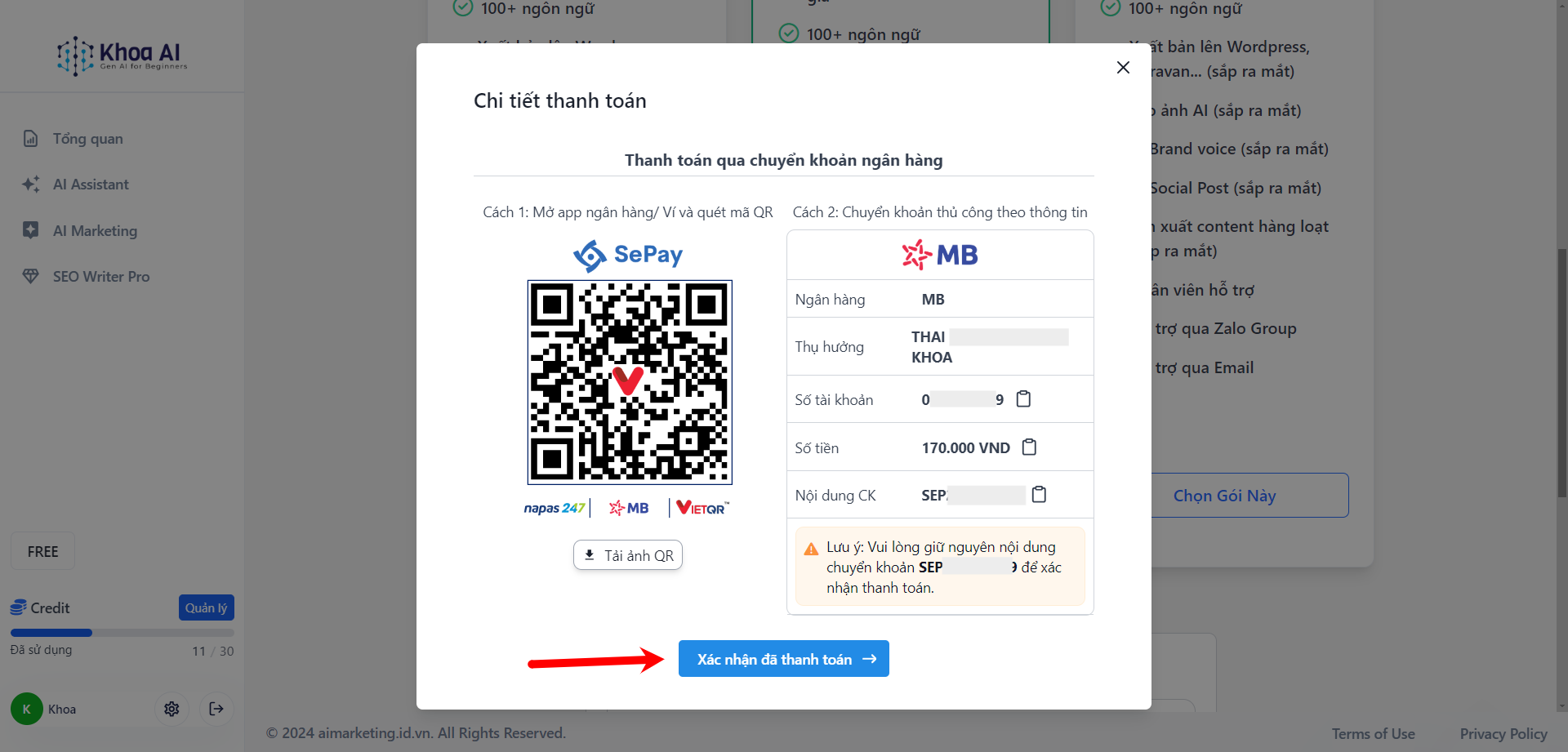 Tùy Chỉnh Thanh Toán Cho AI Store