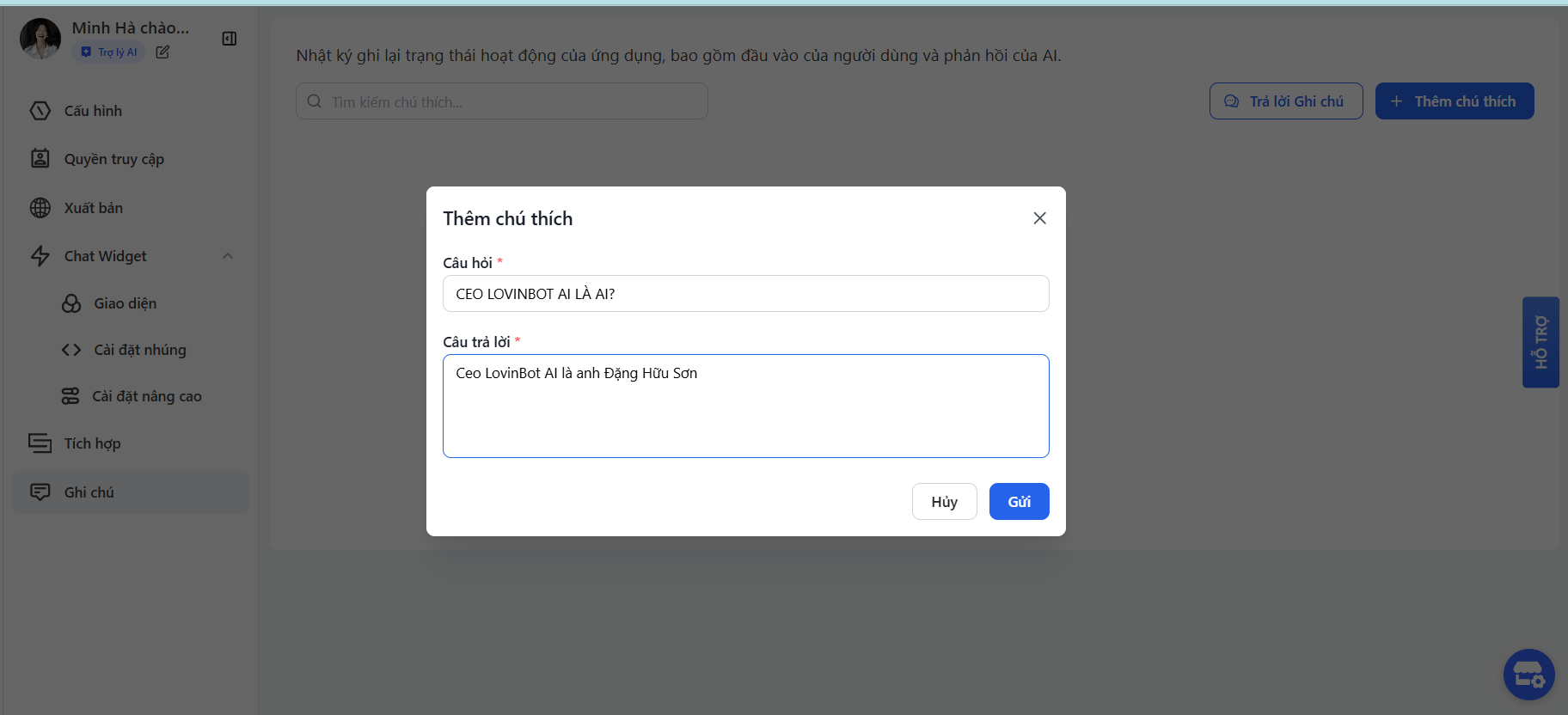 Tính năng Ghi chú không chỉ là công cụ quản lý thông tin hiệu quả mà còn là giải pháp chiến lược giúp doanh nghiệp tối ưu hóa quy trình dịch vụ khách hàng, tiết kiệm chi phí và nâng cao hiệu quả kinh doanh. Bằng cách sử dụng Lovinbot, bạn có thể đảm bảo rằng Chatbot AI của mình luôn sẵn sàng đáp ứng nhu cầu khách hàng với độ chính xác và tốc độ tối ưu.