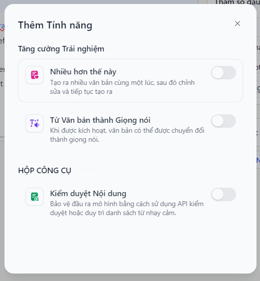 Bước 6: Điều Chỉnh Phần Mục Thêm Tính Năng (Không Bắt Buộc)
