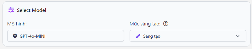 Bước 2: Lựa Chọn Model GPT và Mức Độ Sáng Tạo
