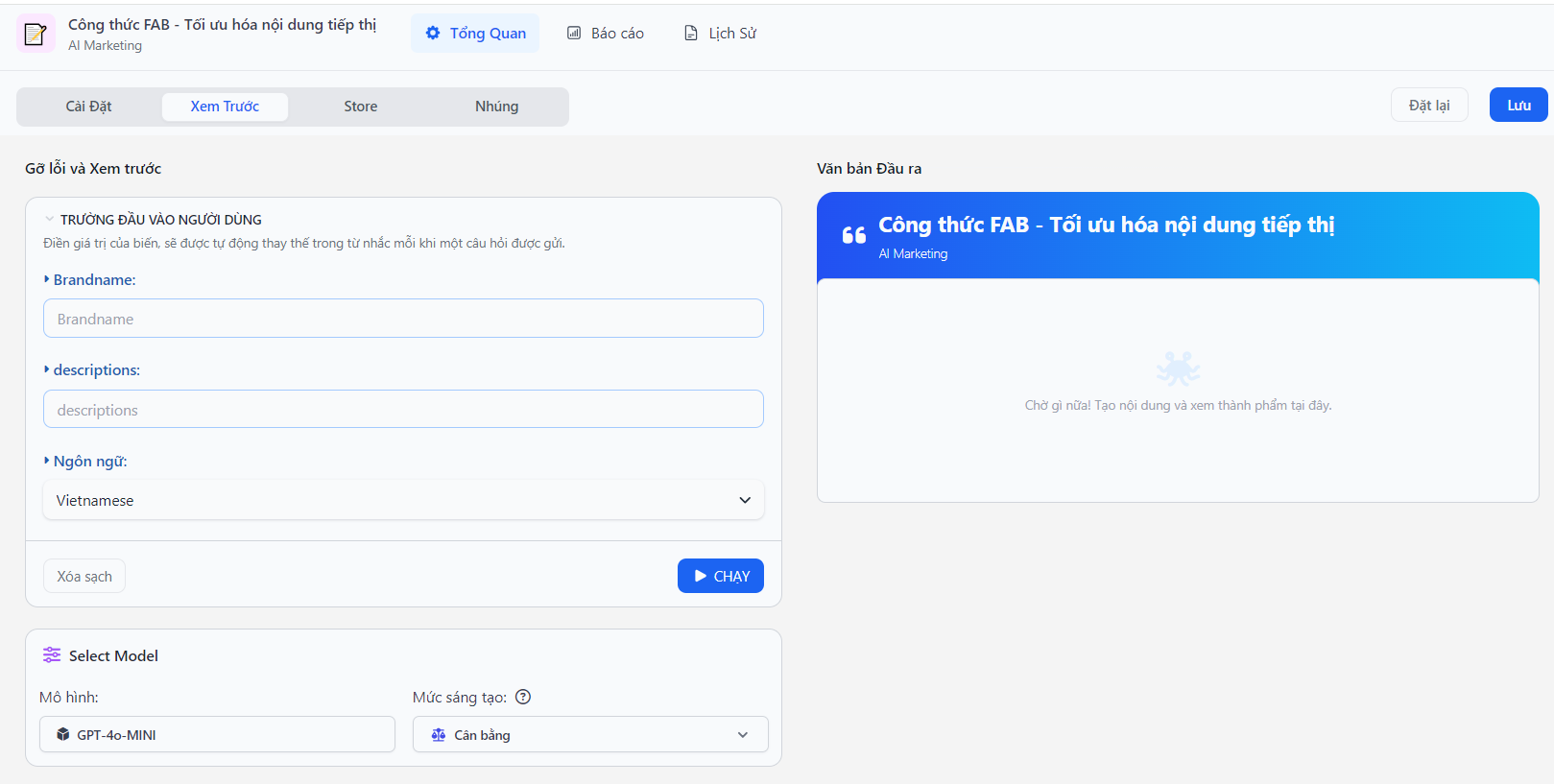 Việc chọn đúng model GPT và mức độ sáng tạo là một bước quan trọng trong việc tối ưu hóa nội dung mà Lovinbot AI tạo ra. Điều này đảm bảo rằng nội dung của bạn không chỉ chính xác mà còn phù hợp với m