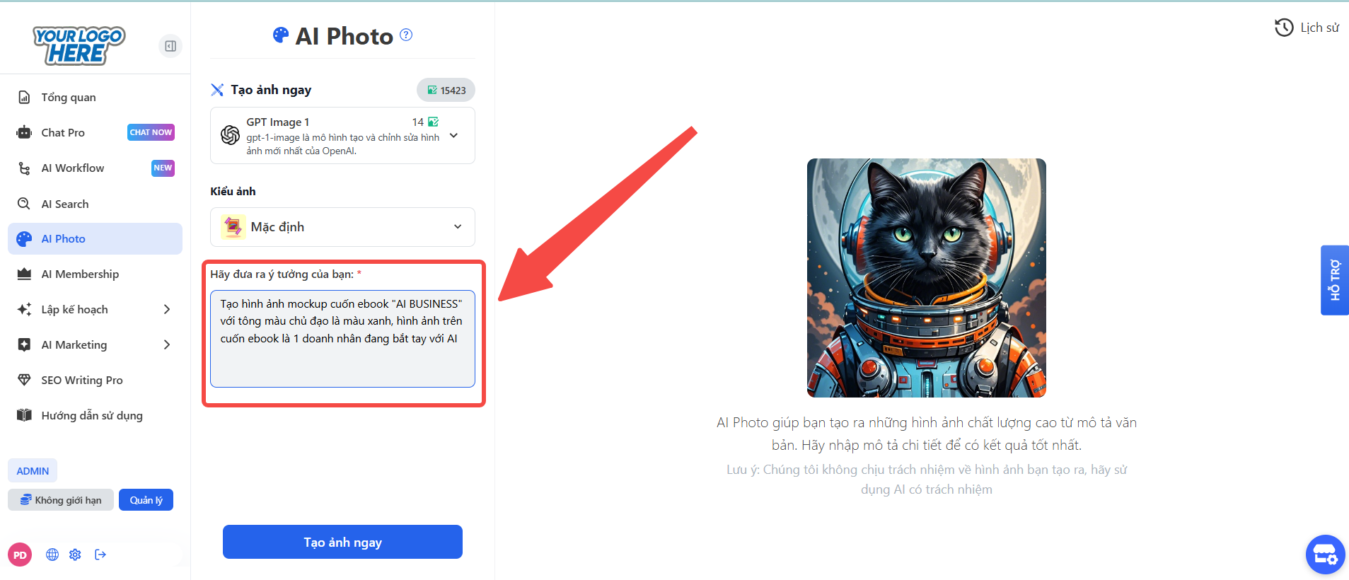 Bước 2: Nhập mô tả ý tưởng (Prompt)