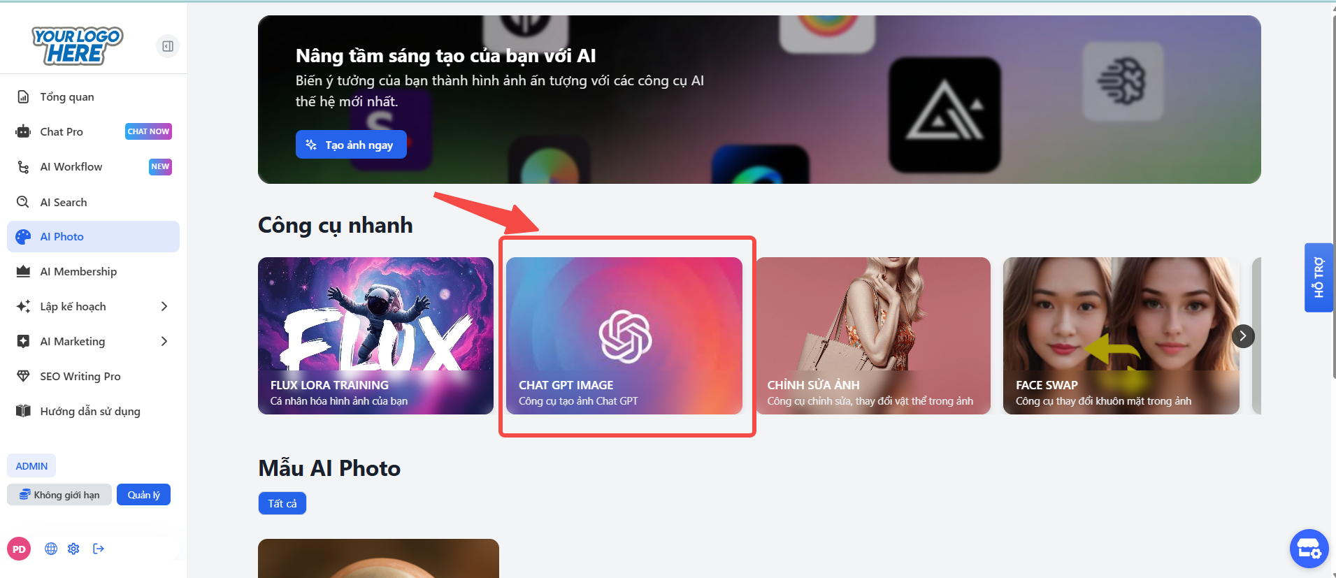 Hoặc chọn công cụ "CHAT GPT IMAGE" trong khu vực "Công cụ nhanh".