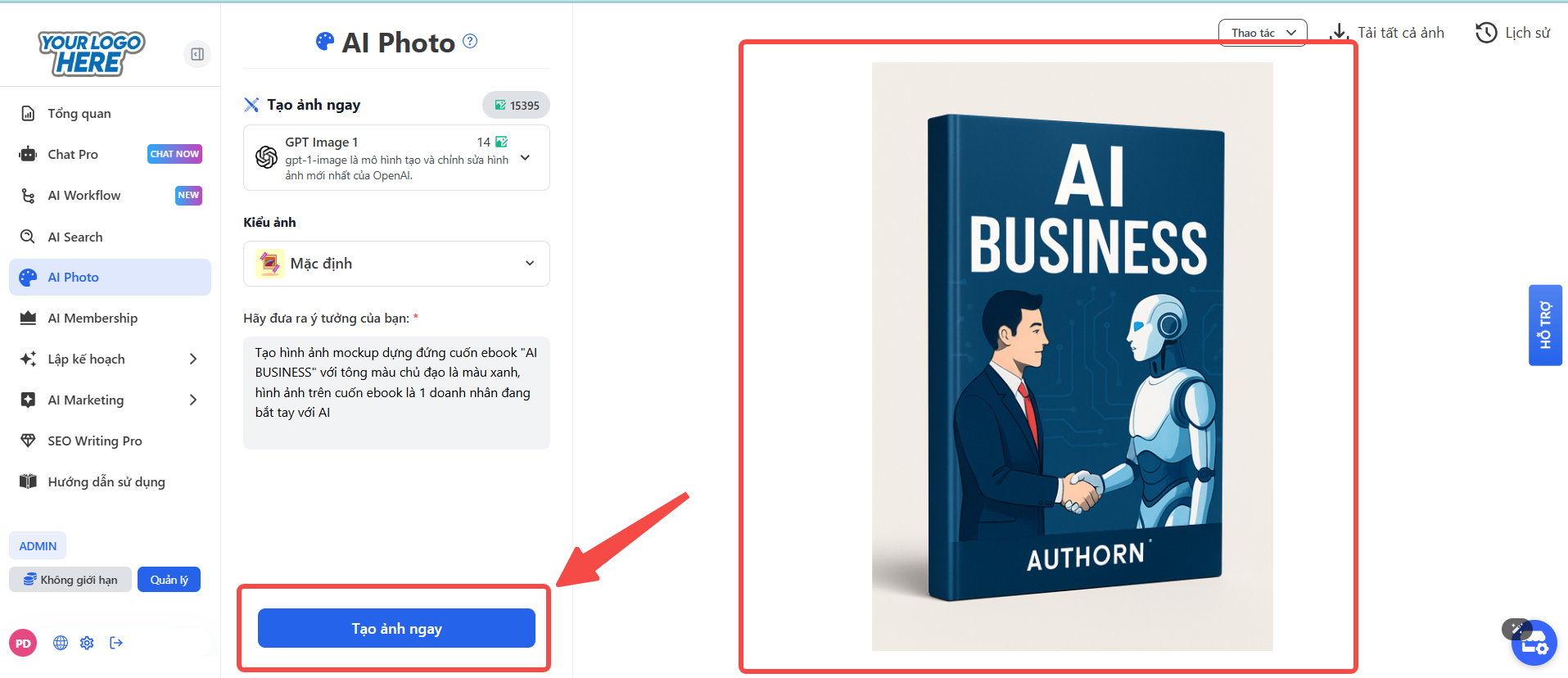 Sau khi đã chọn kiểu ảnh và nhập xong prompt, nhấn vào nút "Tạo ảnh ngay" màu xanh ở phía dưới.