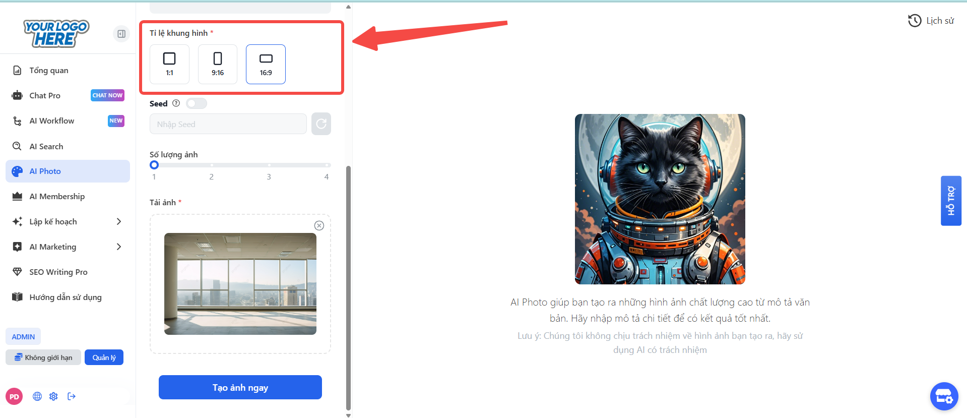 Tỉ lệ khung hình: Chọn tỉ lệ phù hợp cho ảnh đầu ra. Tốt nhất nên chọn tỉ lệ tương đồng với ảnh tham chiếu để tránh bị cắt xén hoặc biến dạng.