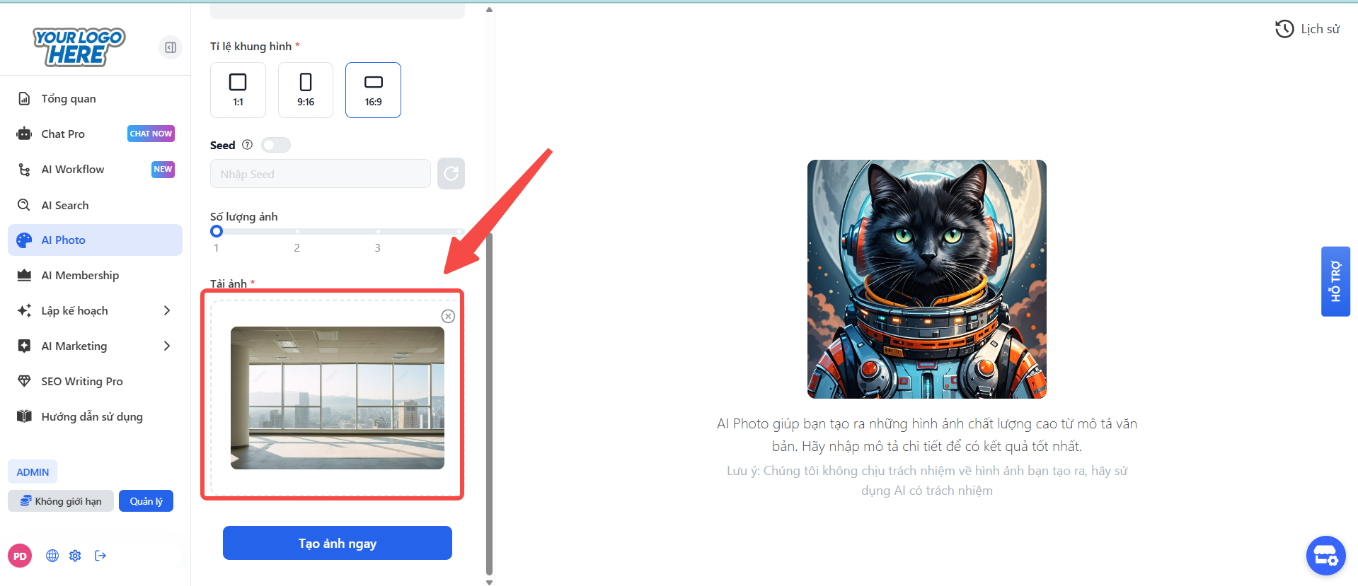 Tải lên bức ảnh gốc mà bạn muốn AI dựa vào đó để sáng tạo (ví dụ: ảnh căn phòng trống, ảnh phong cảnh không có người...).