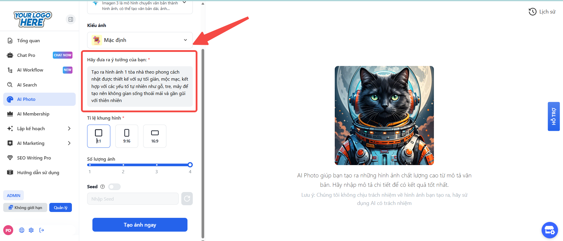 Bước 1: Nhập mô tả ý tưởng (Prompt)