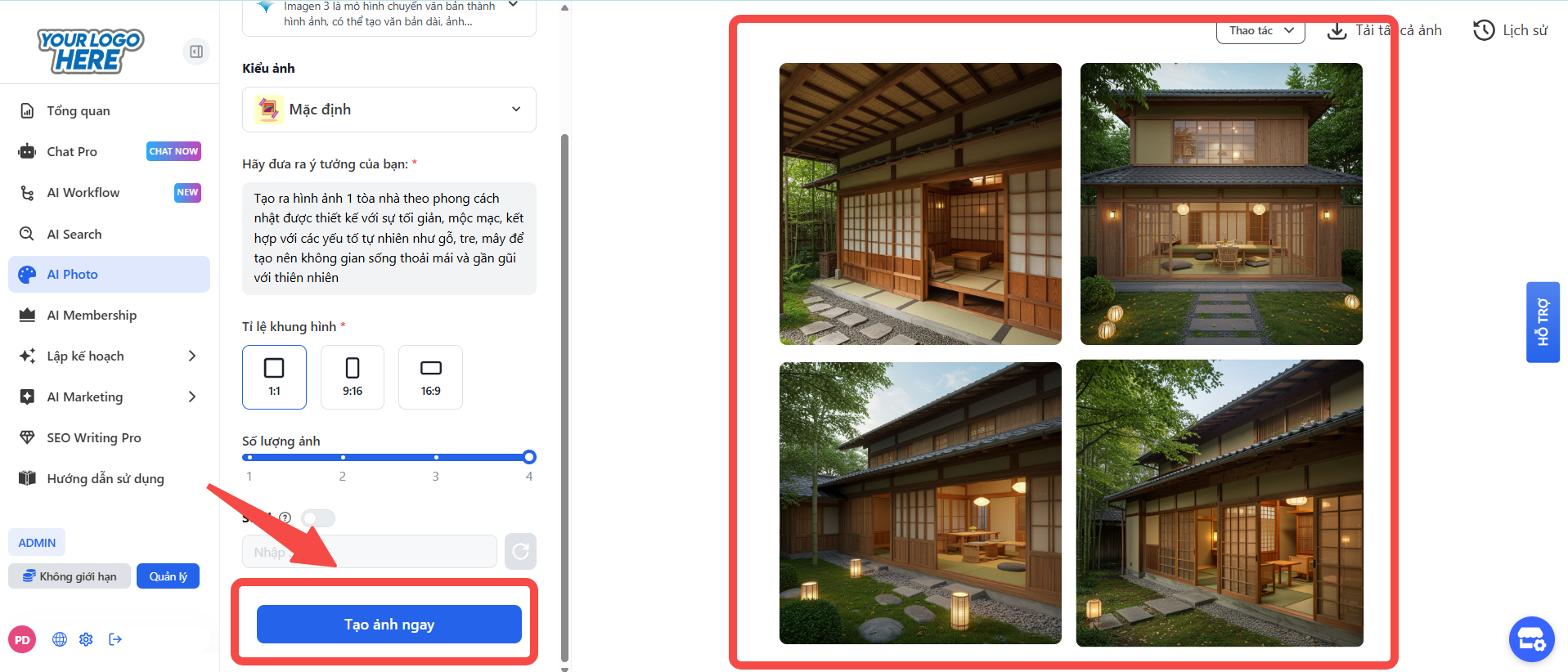 Sau khi đã hài lòng với prompt và các thiết lập, nhấn vào nút "Tạo ảnh ngay" màu xanh.