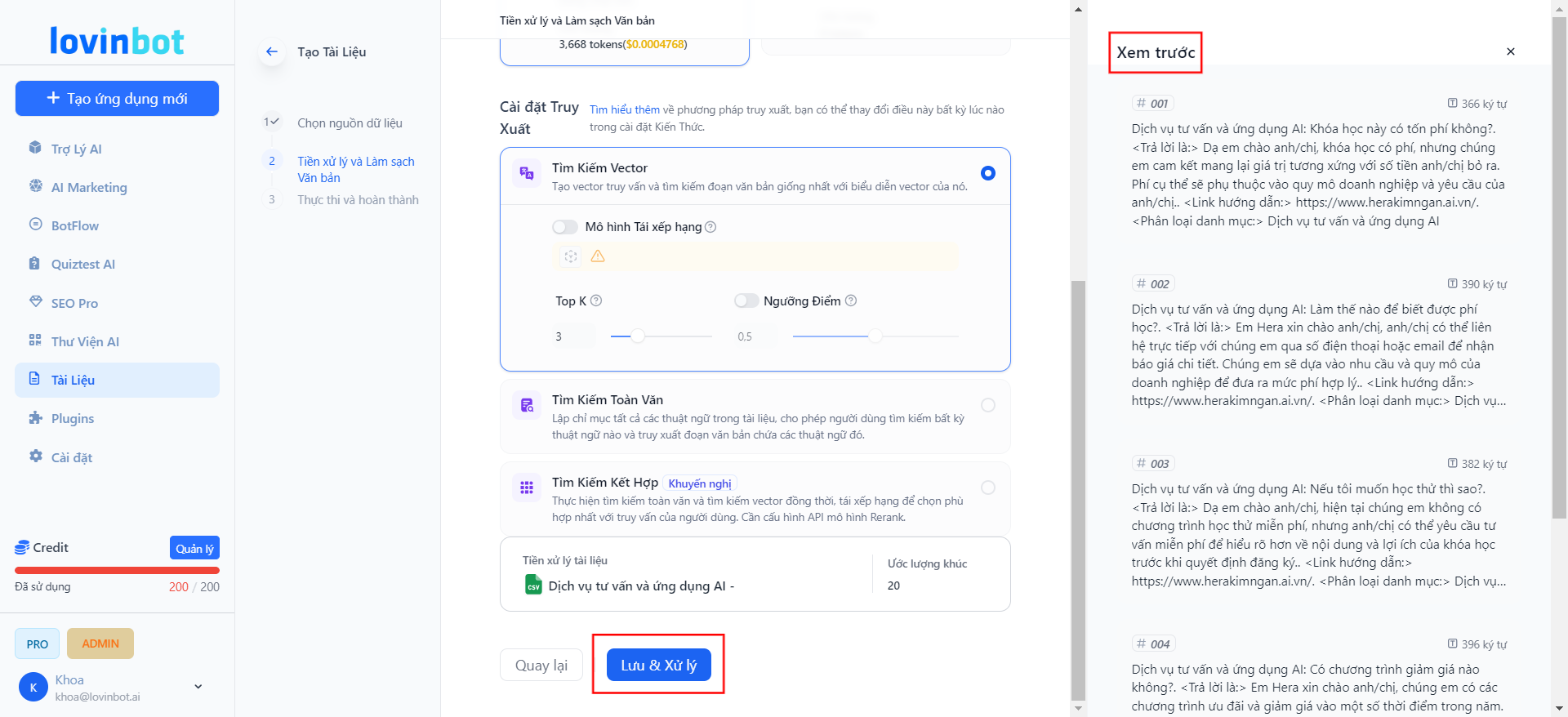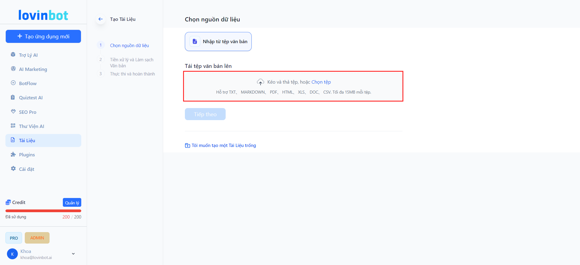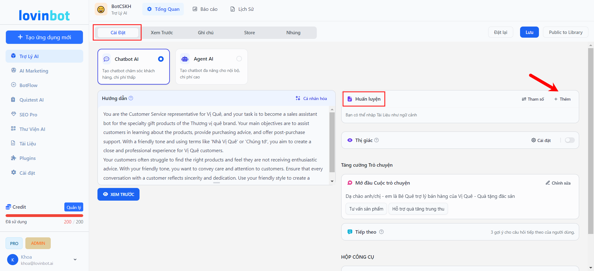 Hướng Dẫn Sử Dụng Knowledge Base (Dữ liệu) Trên Lovinbot