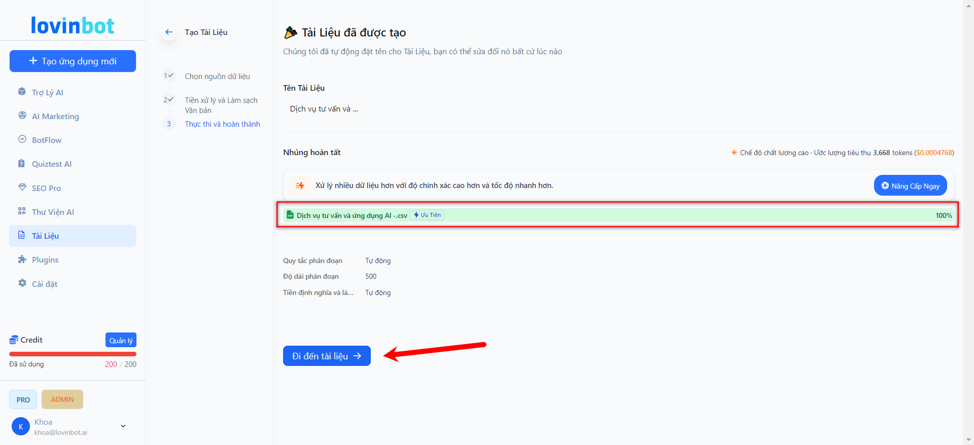 Bước 7: Truy Cập Lại Phần "Tài Liệu"