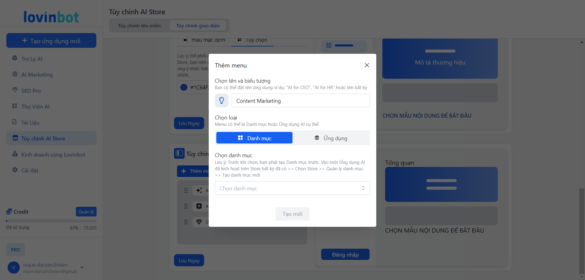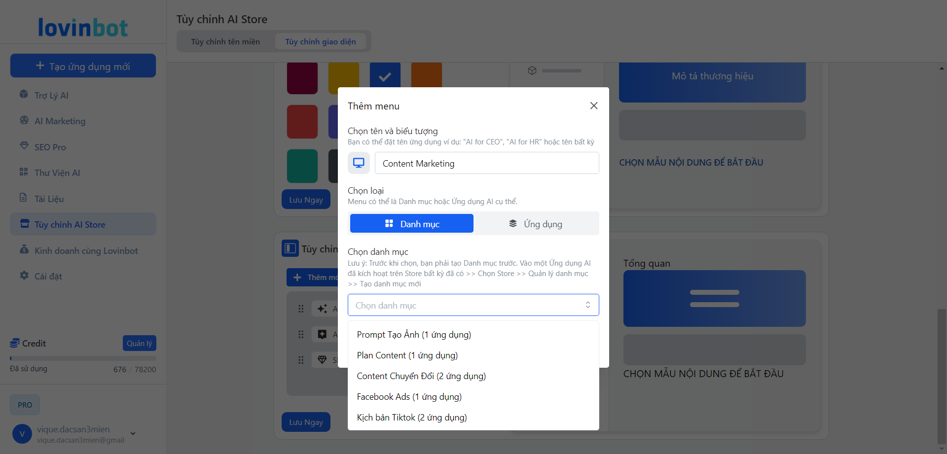 LovinBot mang đến cho bạn giải pháp tùy chỉnh AI Store của riêng mình một cách dễ dàng và linh hoạt. Dưới đây là hướng dẫn chi tiết từng bước giúp bạn hoàn thành việc tùy chỉnh AI Store, từ tên miền, giao diện, đến cấu hình ứng dụng.
