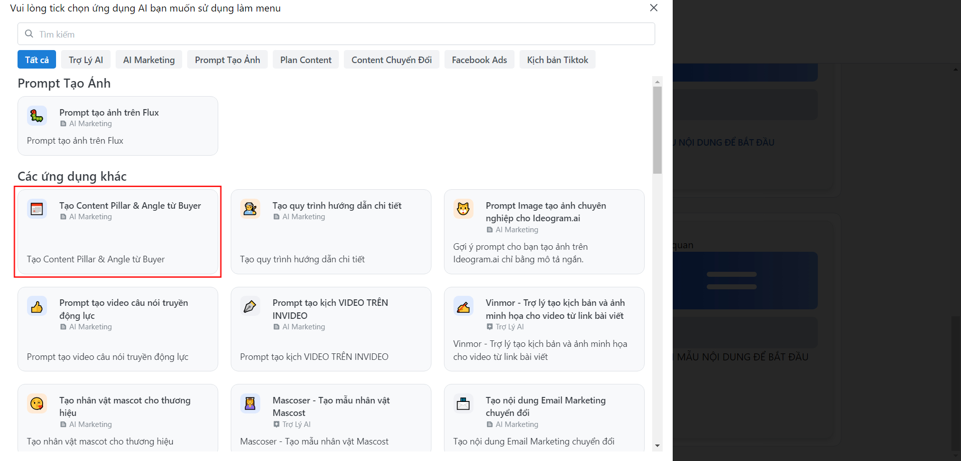 Nhấn Chọn ứng dụng và chọn ứng dụng AI đã kích hoạt.