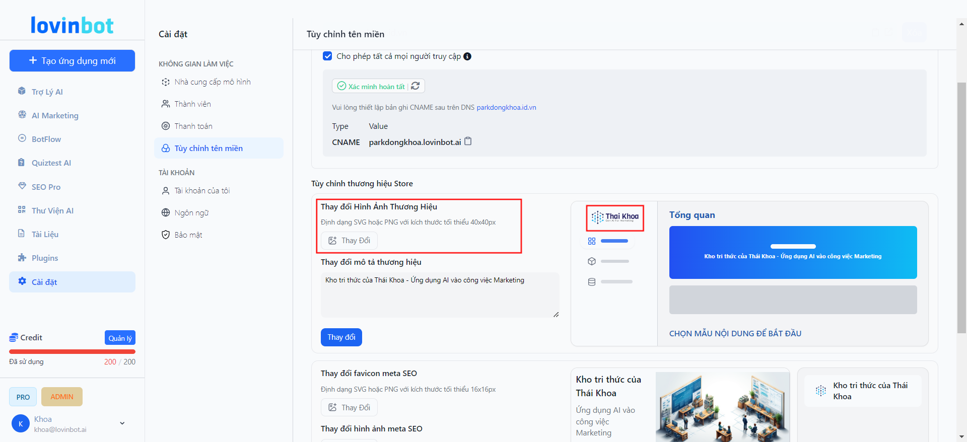 Hướng Dẫn Tùy Chỉnh Thương Hiệu Store Trên Lovinbot